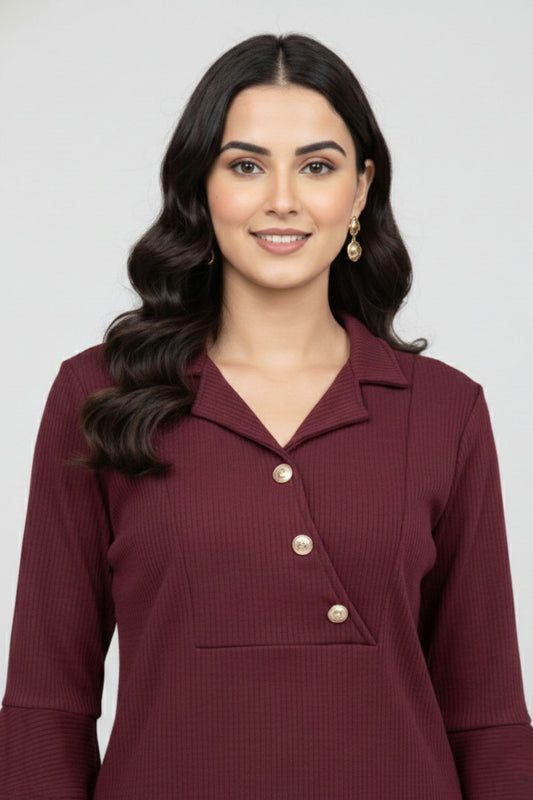 -30% OFFMaroon Button-Detail Co-Ord Set