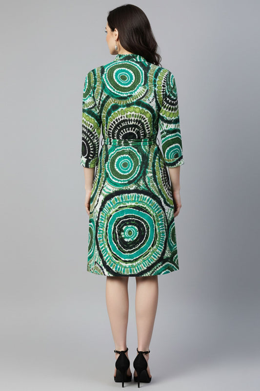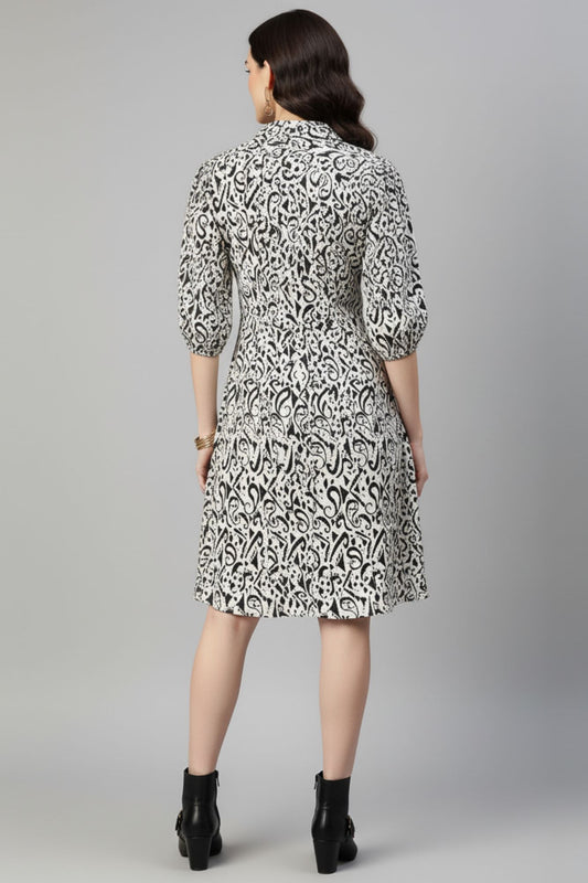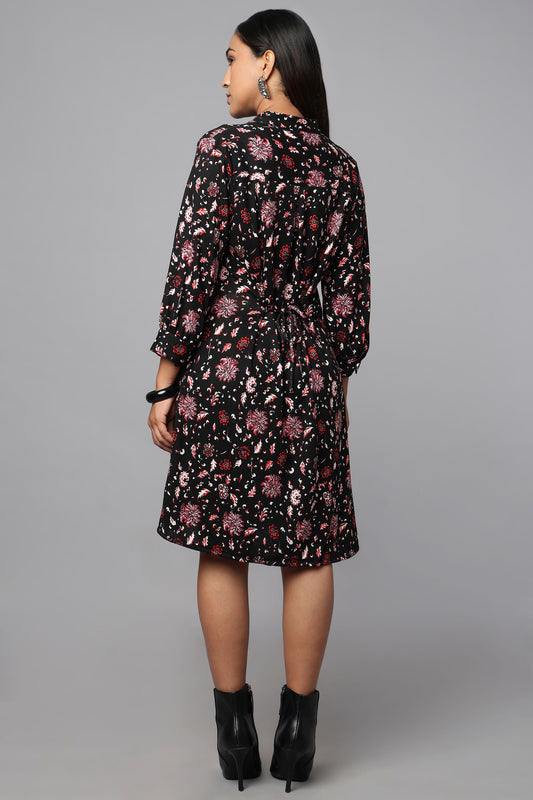 -30% OFFBlack Printed Tie-Waist Shirt Dress