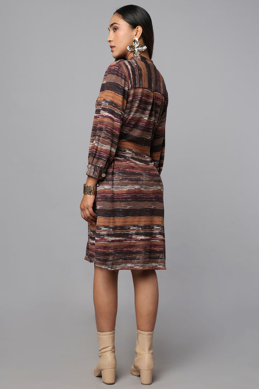 -30% OFFRed Printed Tie-Waist Shirt Dress