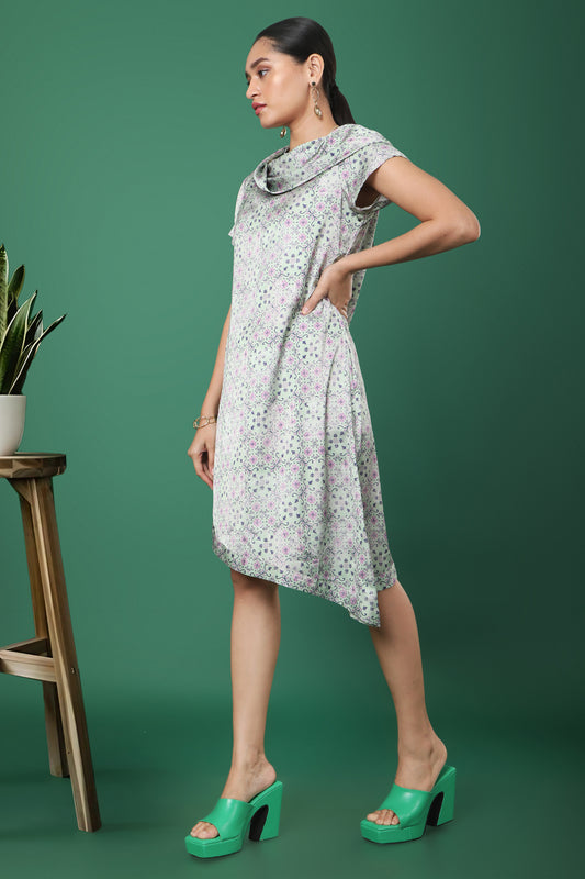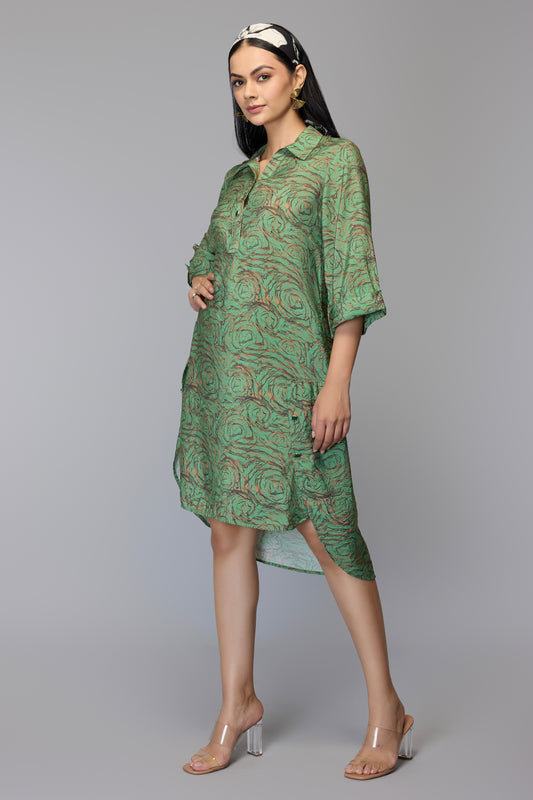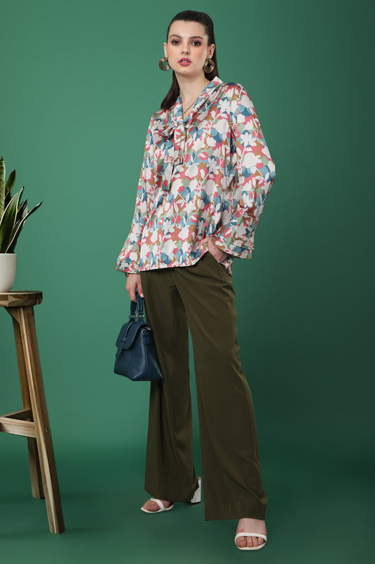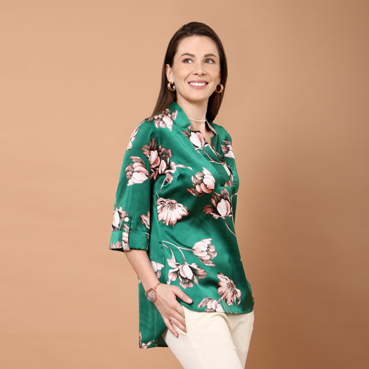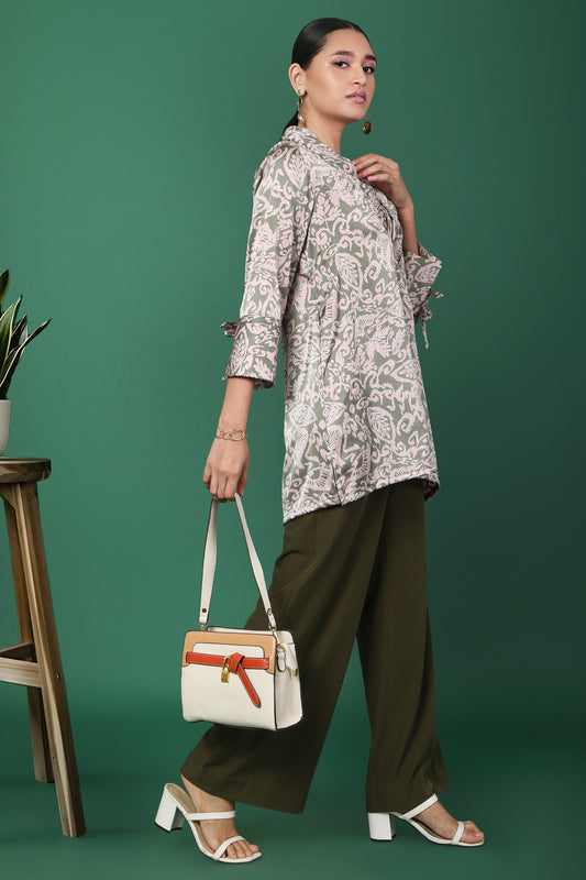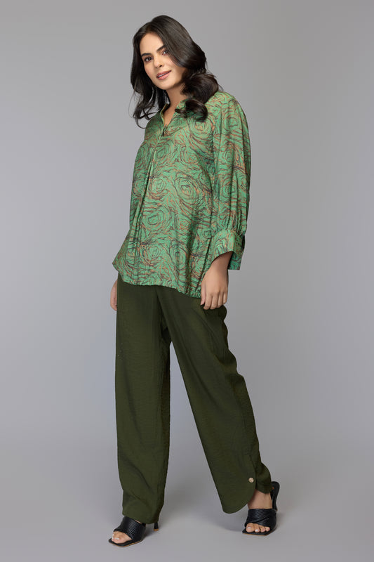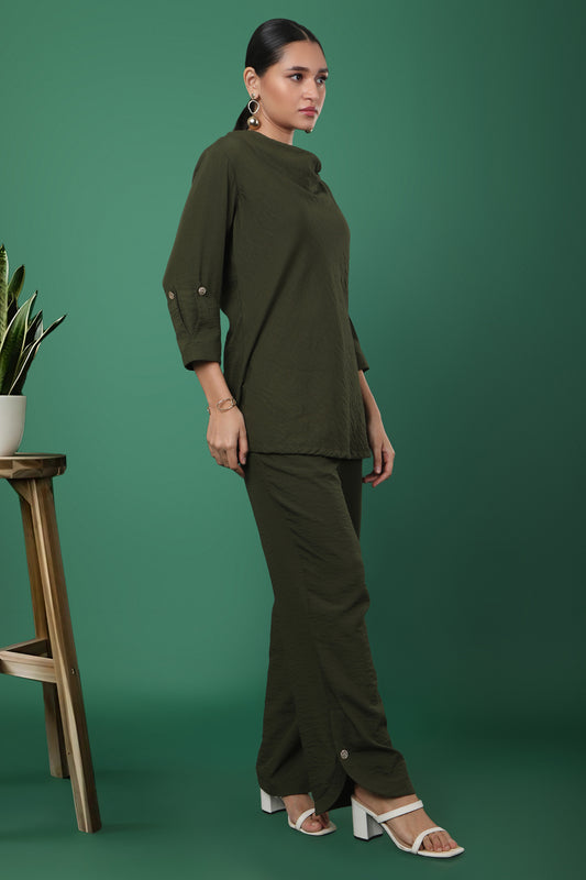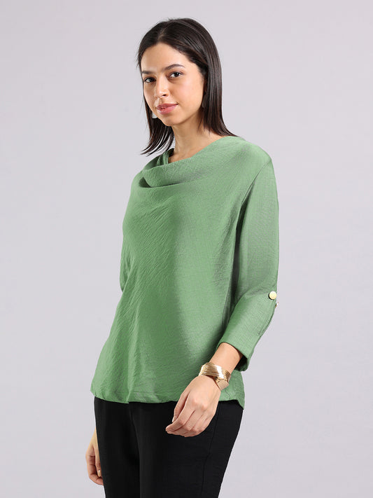Olive Green Cowl Neck Tunic with Roll-Up Sleeves