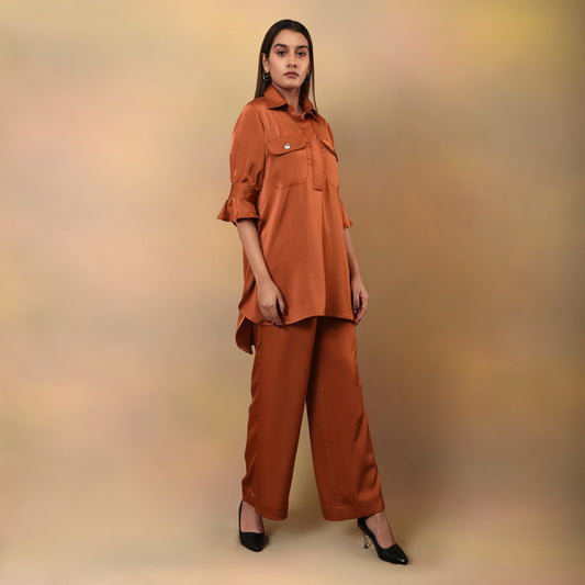 -86% OFFRust Coloured Satin Co-ord Set Top