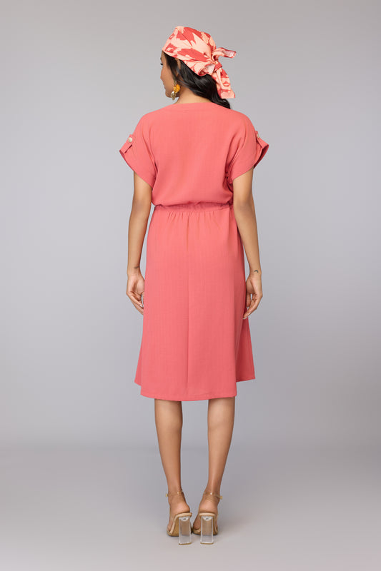 -10% OFFCasual Pink Drawstring Dress