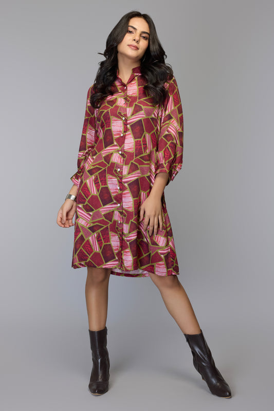 -62% OFFEliza Cranberry Geometric Dress