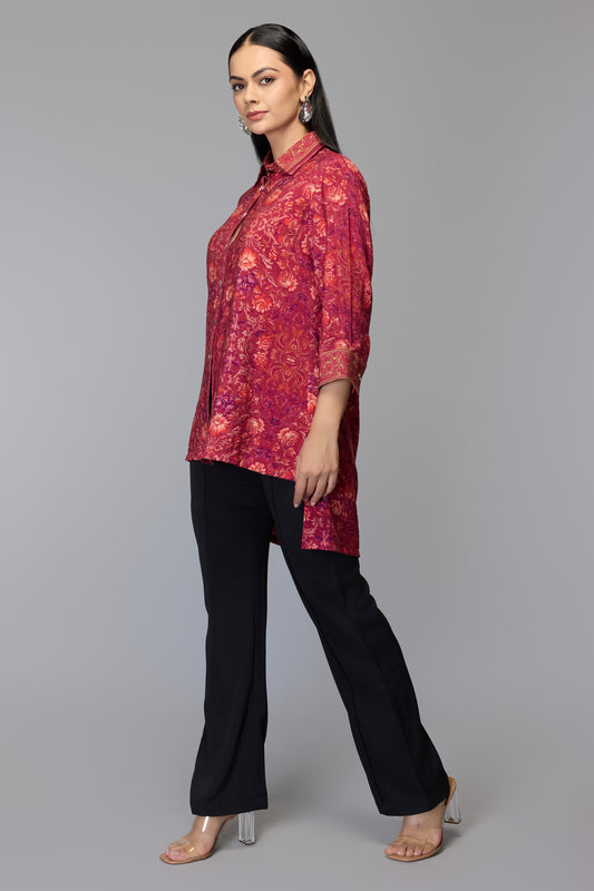 -65% OFFFloral Cranberry High-Low Top