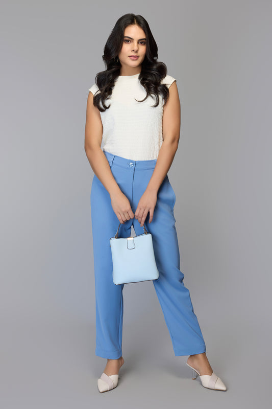 Sky Blue Straight Fit Women’s Trousers with Side Pockets