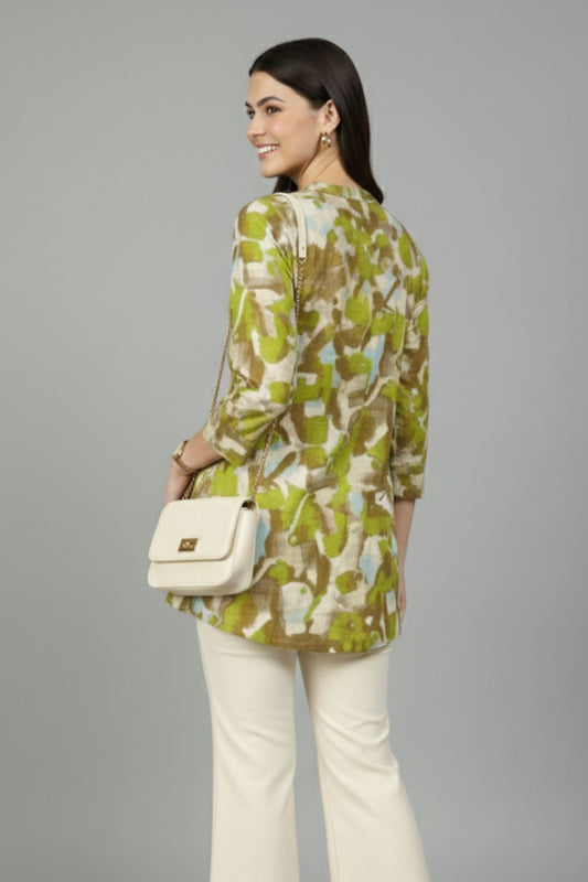 -50% OFFGreen Brushstroke Print Tunic