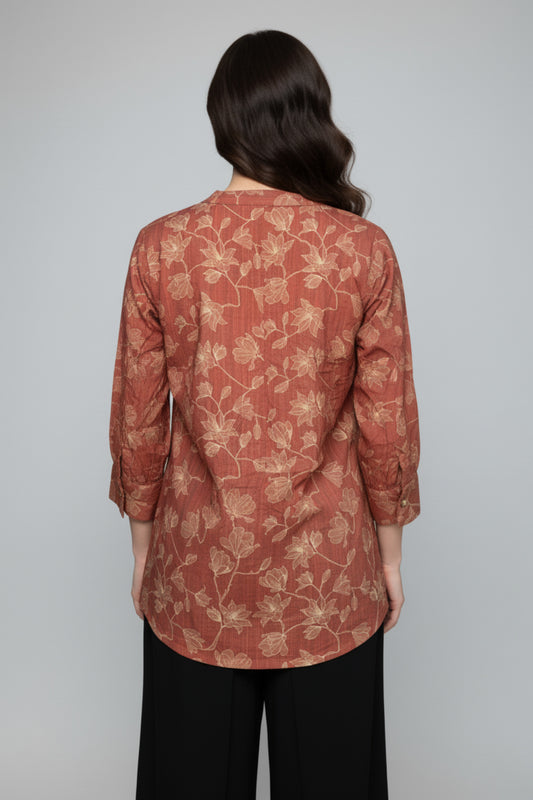 Clay Floral Print Tunic with High-Low Hemline