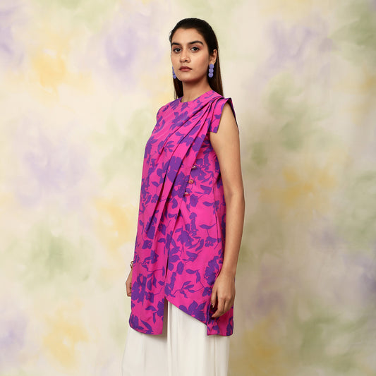 -86% OFFFloral Asymmetric Pleated Top