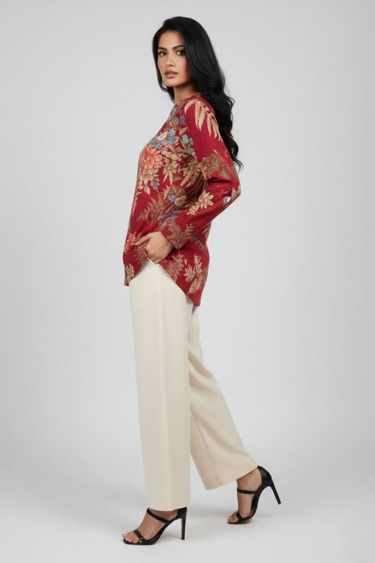 V-Neck Floral Tunic – Red | Viscose Blen