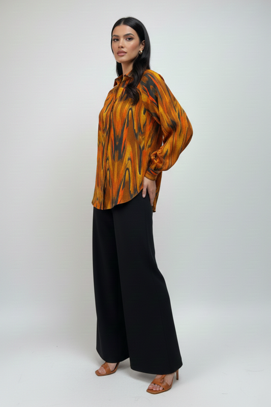 Abstract Printed Collared Top – Multi | Modal