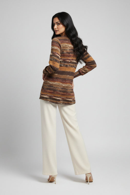 Earth-Tone Printed Tunic – Brown | Viscose Blend