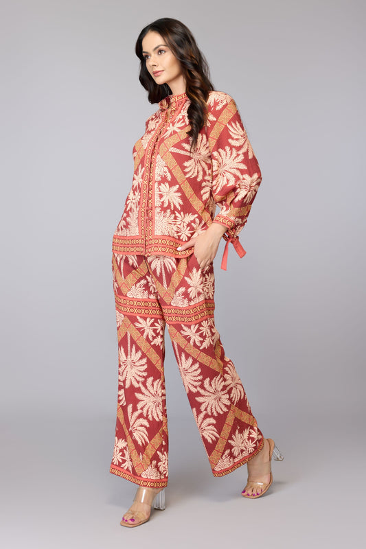 Palm Print Co-Ord Set - Brown | Viscose Blend