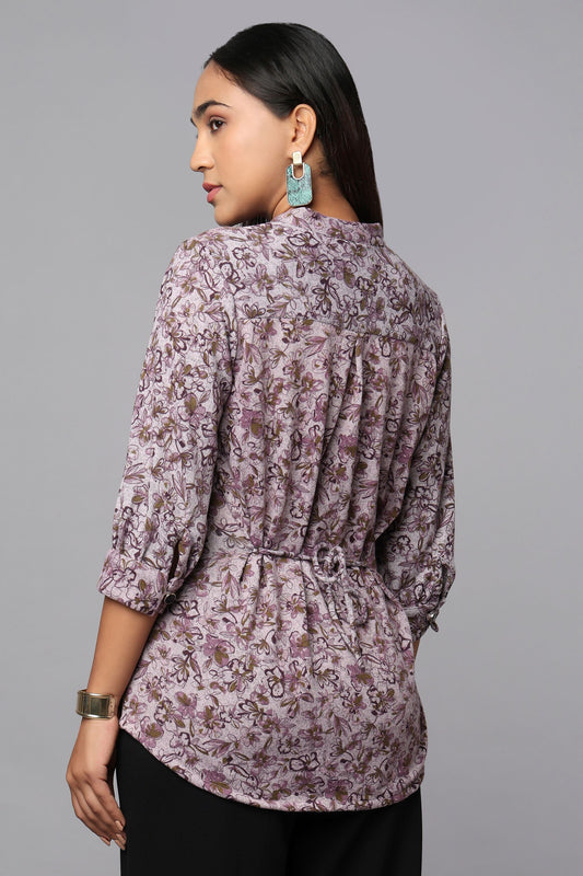 Purple Floral Shirt Dress with Waist Belt