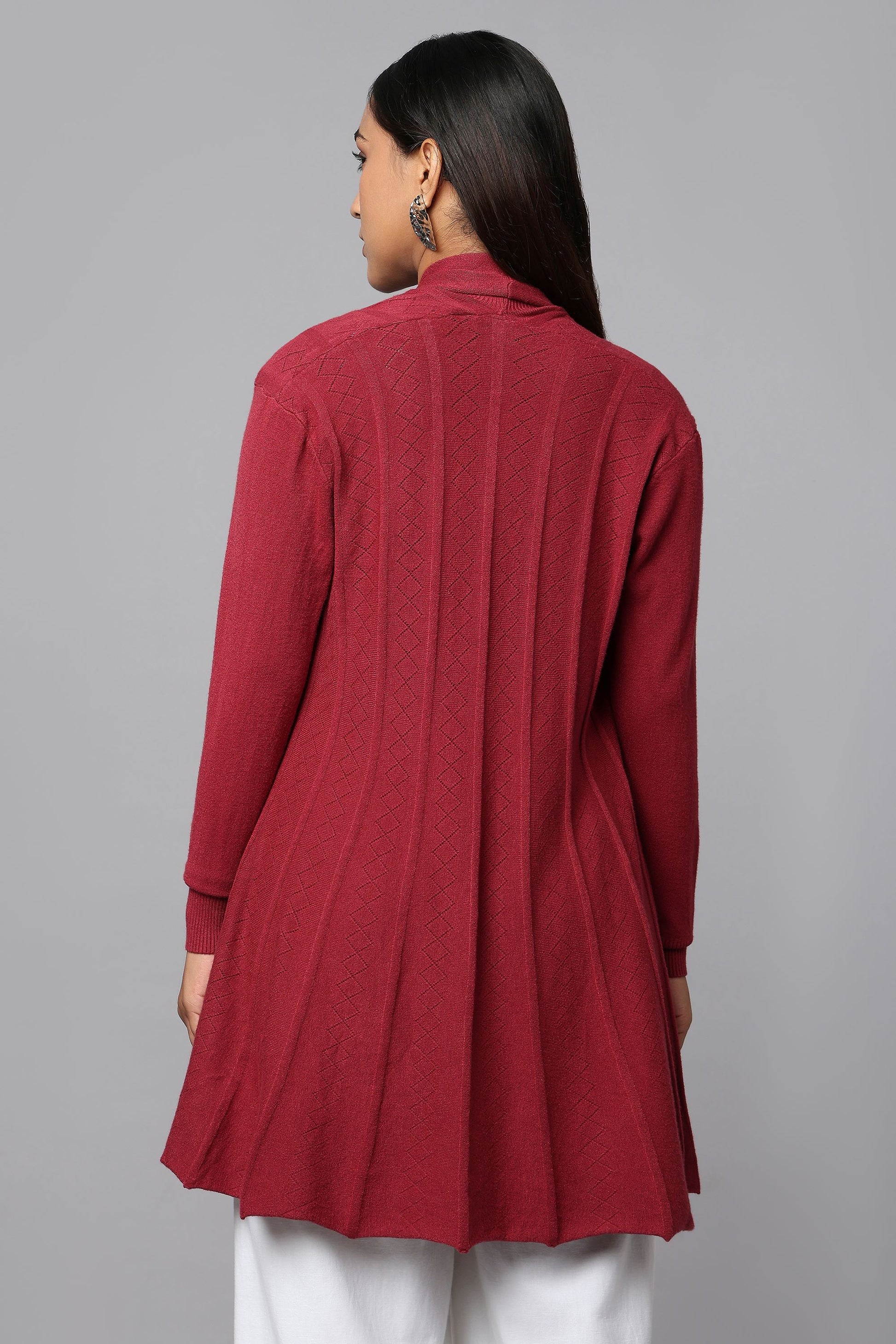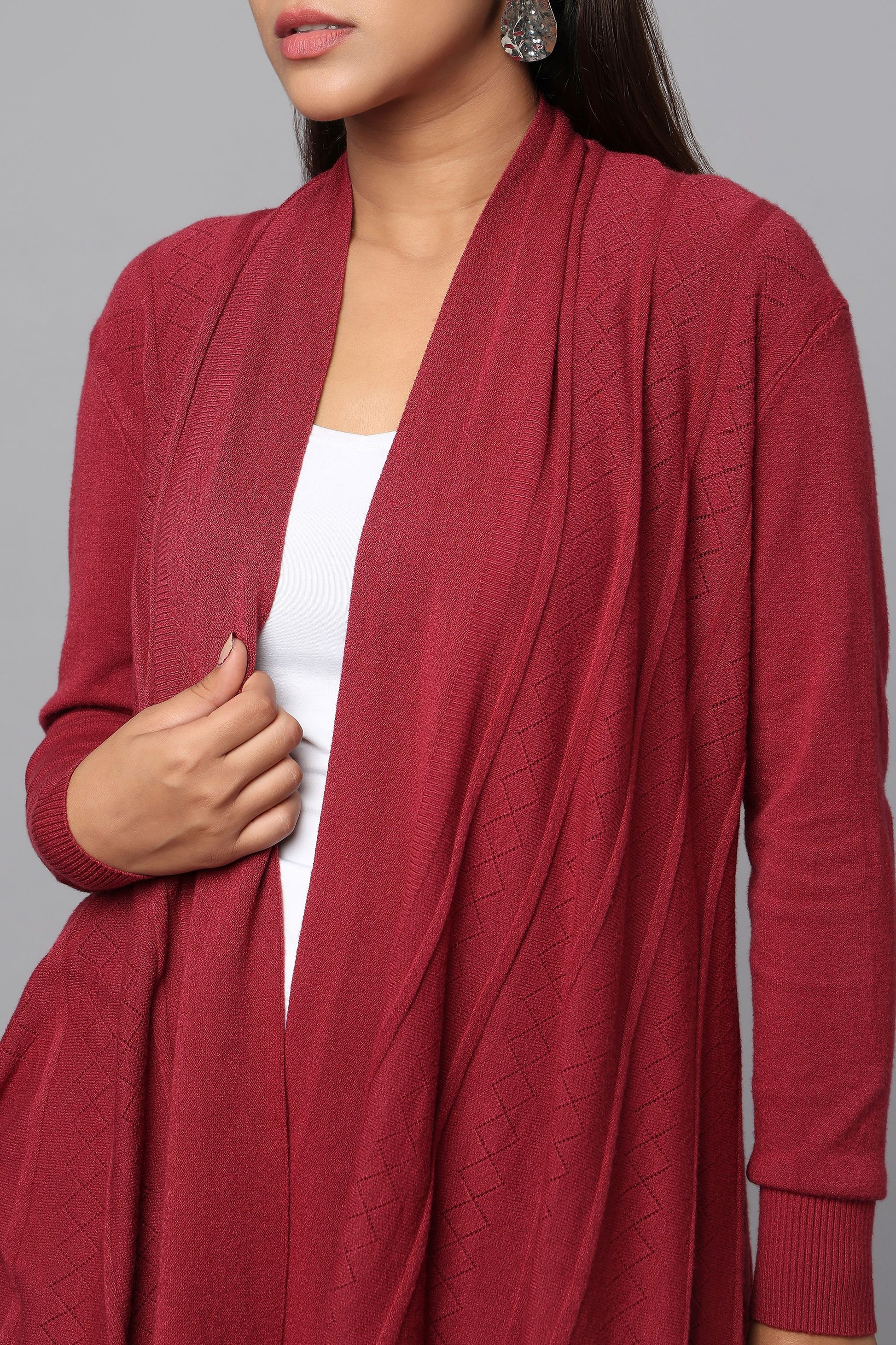 This longline open-front cardigan is crafted from a soft viscose blend knit and features subtle diamond-shaped pointelle knit patterns throughout the front and back. Its lightweight, flowy silhouette gently drapes the body, offering comfort without compromising on structure. The ribbed cuffs and hem ensure a clean, polished look, while the high-low hem adds movement and layering ease. Perfect for styling over casuals or elevating everyday basics.
