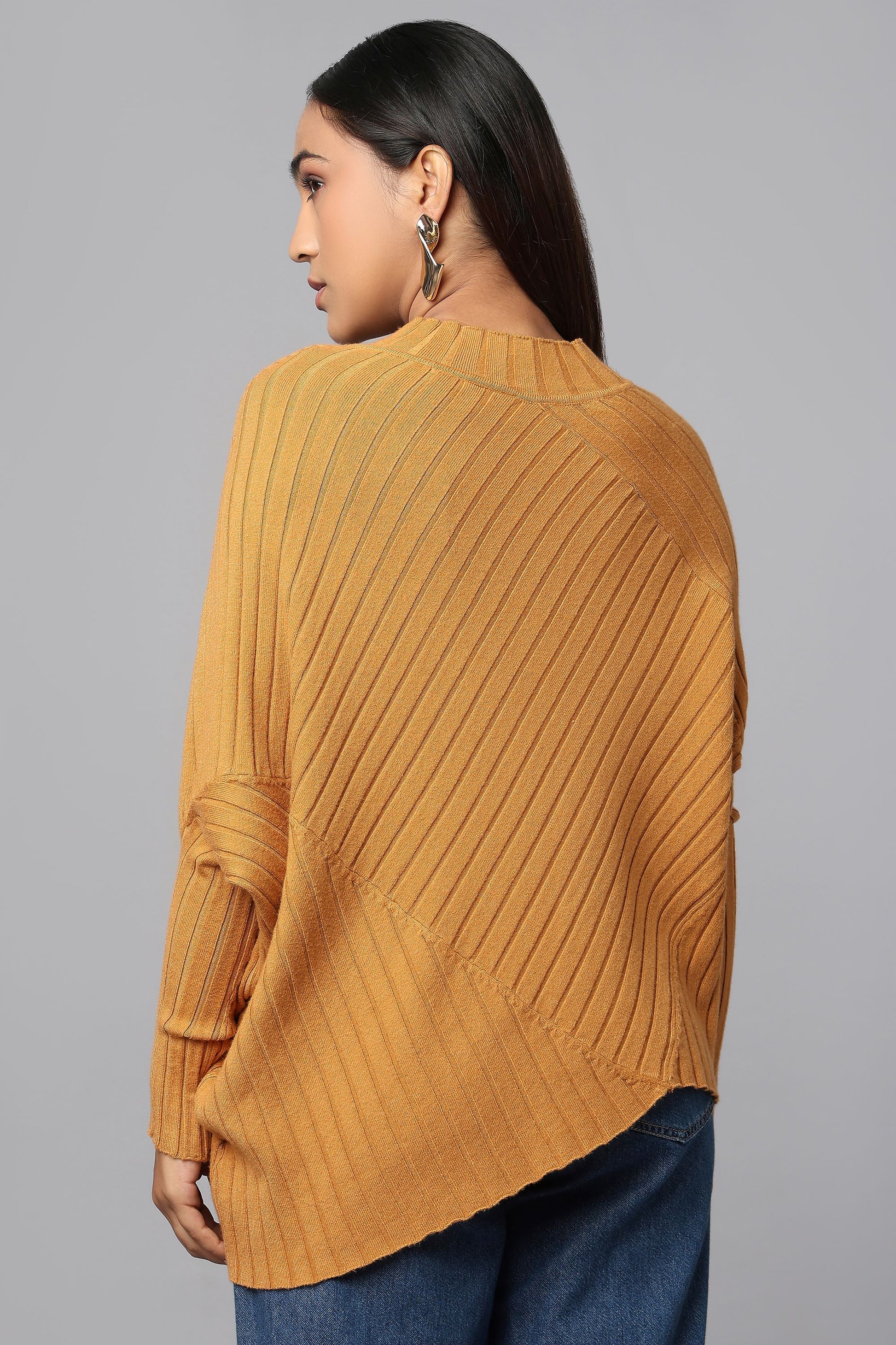 Effortlessly Chic Asymmetrical Sweater - Ocher