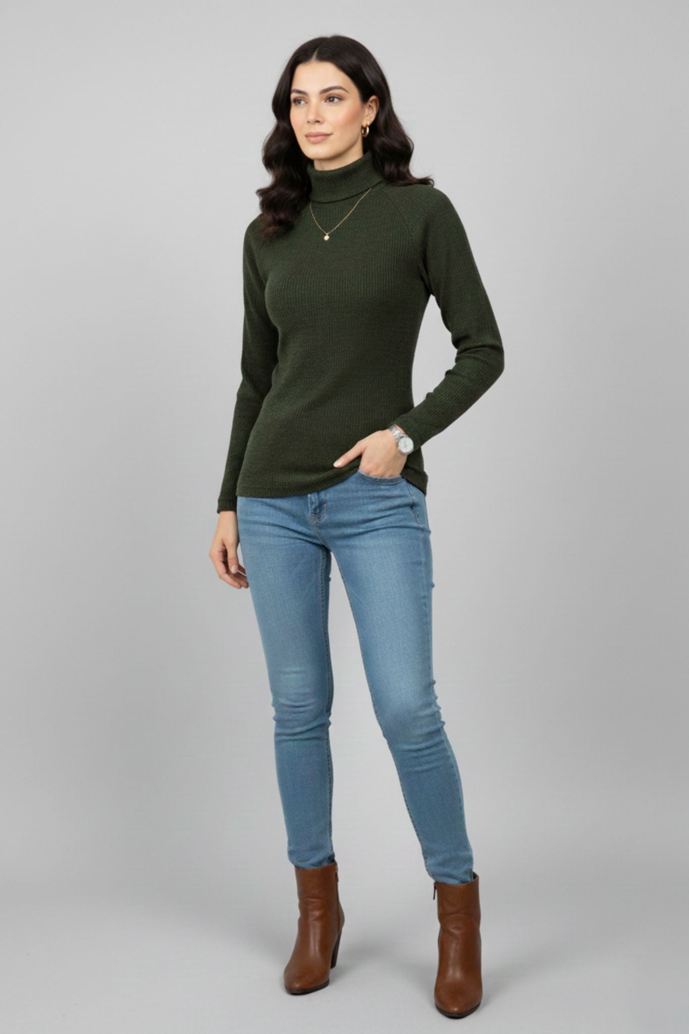This green top from TAMiSKA By Narendra Kumar is designed for everyday comfort with a clean, polished look. Crafted in a soft poly blend fabric, it features a subtle textured surface that adds depth without overpowering the design. The high neckline offers a refined, winter-friendly finish, while the full sleeves and slim silhouette create a flattering fit. Easy to style with jeans, trousers, or skirts, this versatile top works well for casual outings, workdays, and layered winter looks.
