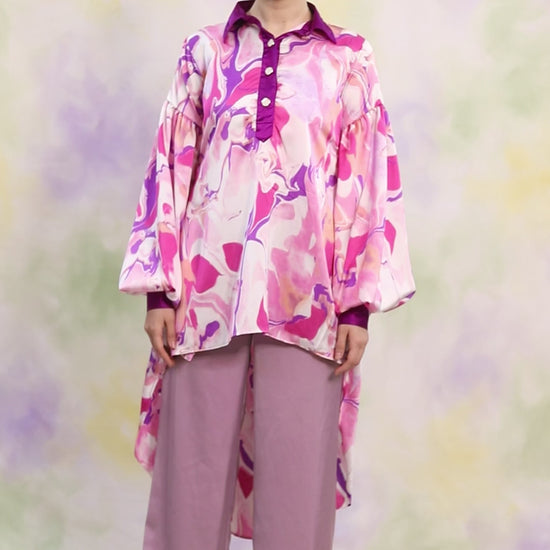 - BE EFFORTLESSLY STYLISH: This purple co-ord set features stylish full sleeves with elegant cuff detailing and contrast border design. This chic woman’s casual summer clothing has a comfortable and regular fit with an elegant collar neckline with button closure to make it effortlessly stylish. This purple pant features a slit hem detail, spacious pockets, and a half elasticated waistband. Visit our storefront to choose from a wide range of kurtis, tops, bottom wear, dresses, tunics, and more from Tamiska.