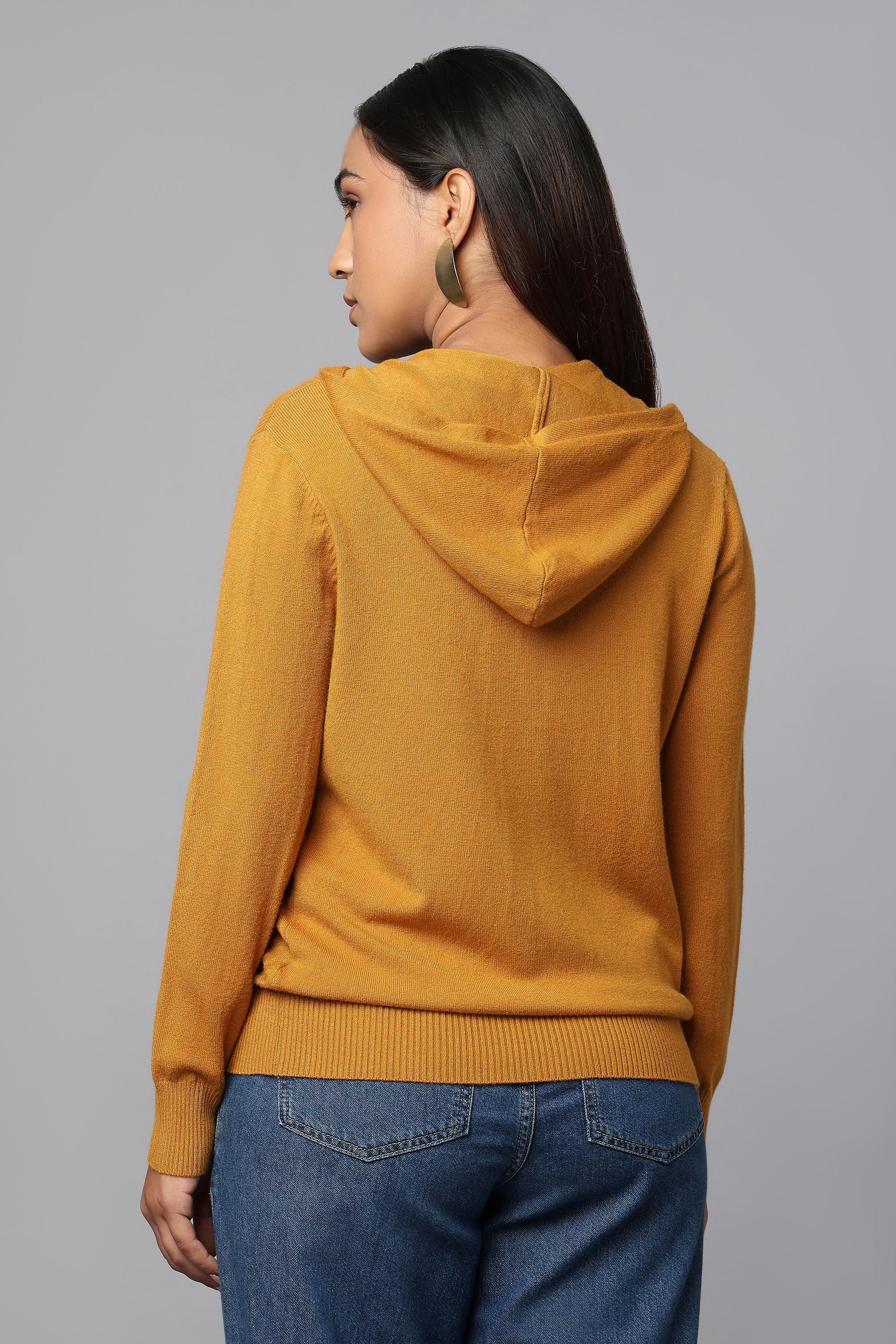 Hoodie Ocher Knit Sweater