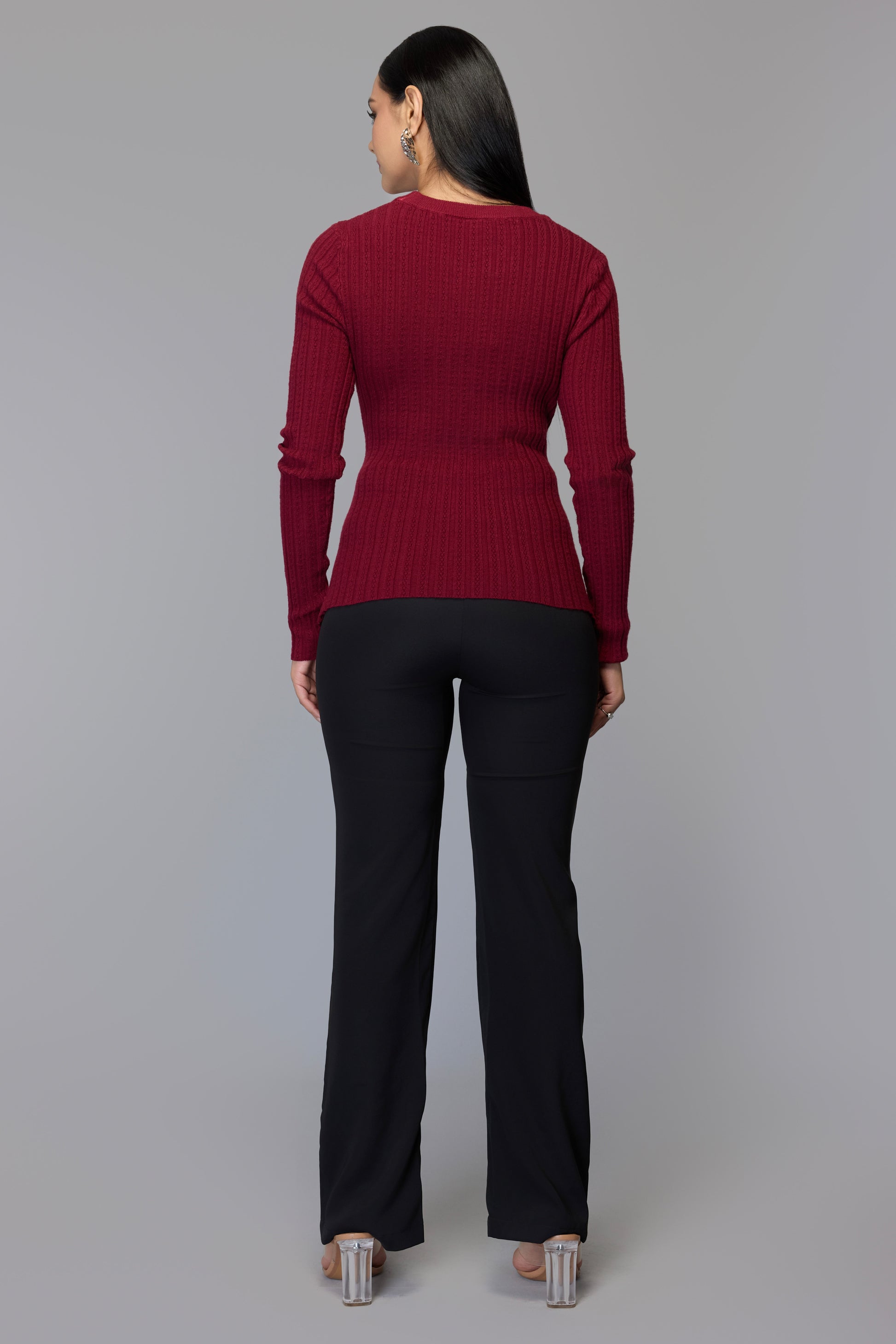 Make a bold yet refined statement with TAMiSKA’s ribbed knit sweater — crafted in a soft viscose blend that hugs you in all the right places. The wrap-style front creates an hourglass illusion, while the choker-style V-neckline adds an edge of modern sophistication. Full sleeves and stretchable rib knit keep it snug for cool evenings. Whether layered under a blazer or worn as-is with jeans or tailored pants, this sweater makes chic styling effortless.
