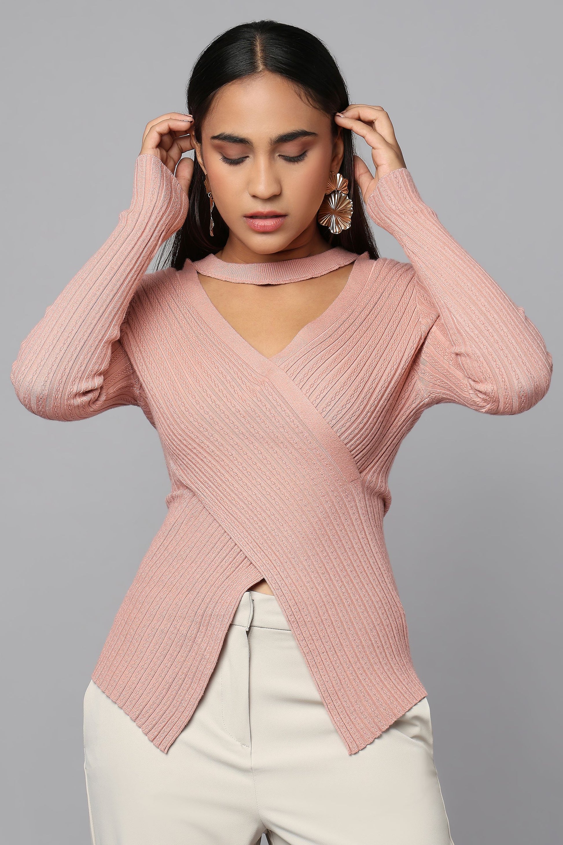 Make a bold yet refined statement with TAMiSKA’s ribbed knit sweater — crafted in a soft viscose blend that hugs you in all the right places. The wrap-style front creates an hourglass illusion, while the choker-style V-neckline adds an edge of modern sophistication. Full sleeves and stretchable rib knit keep it snug for cool evenings. Whether layered under a blazer or worn as-is with jeans or tailored pants, this sweater makes chic styling effortless.